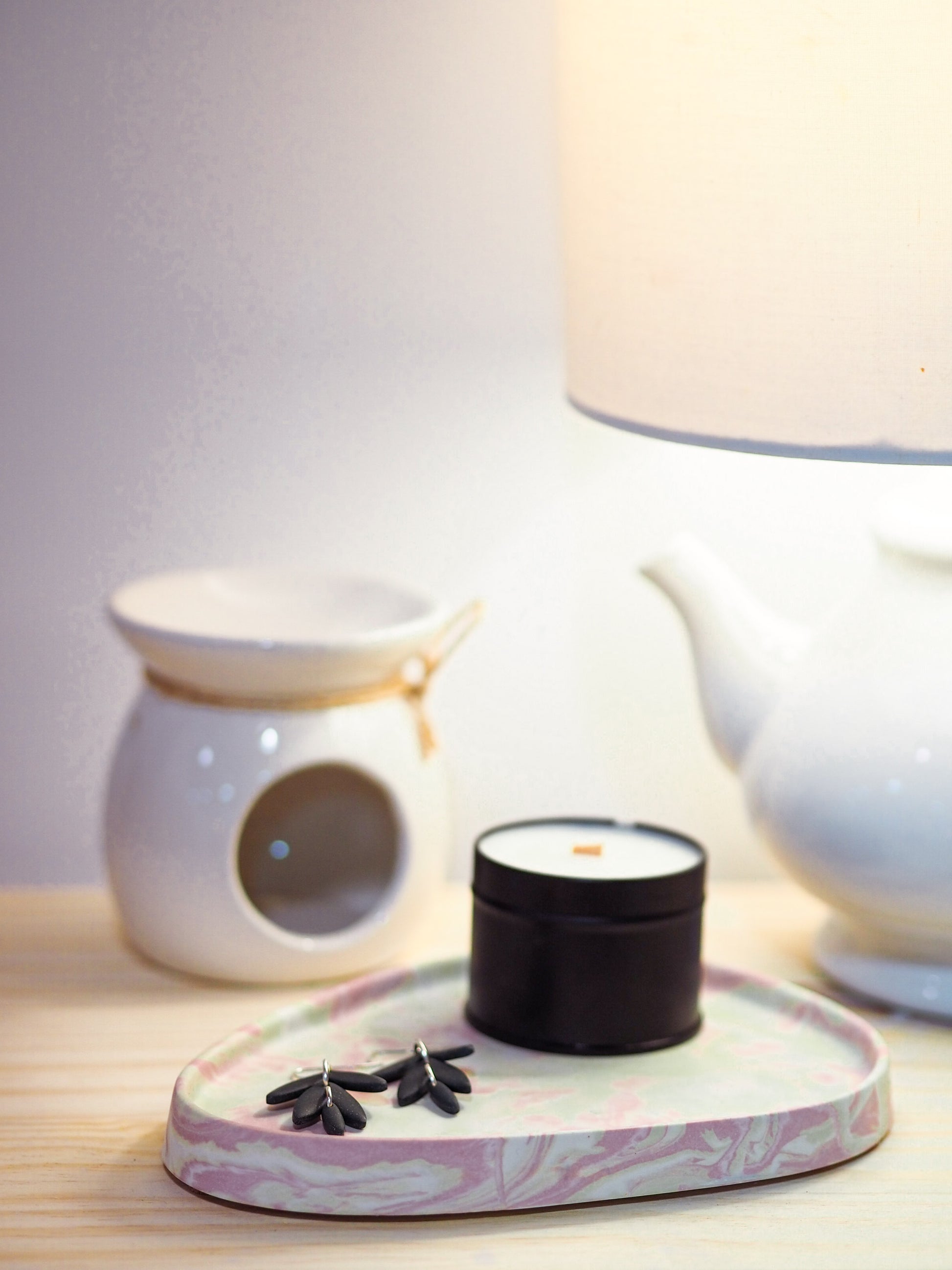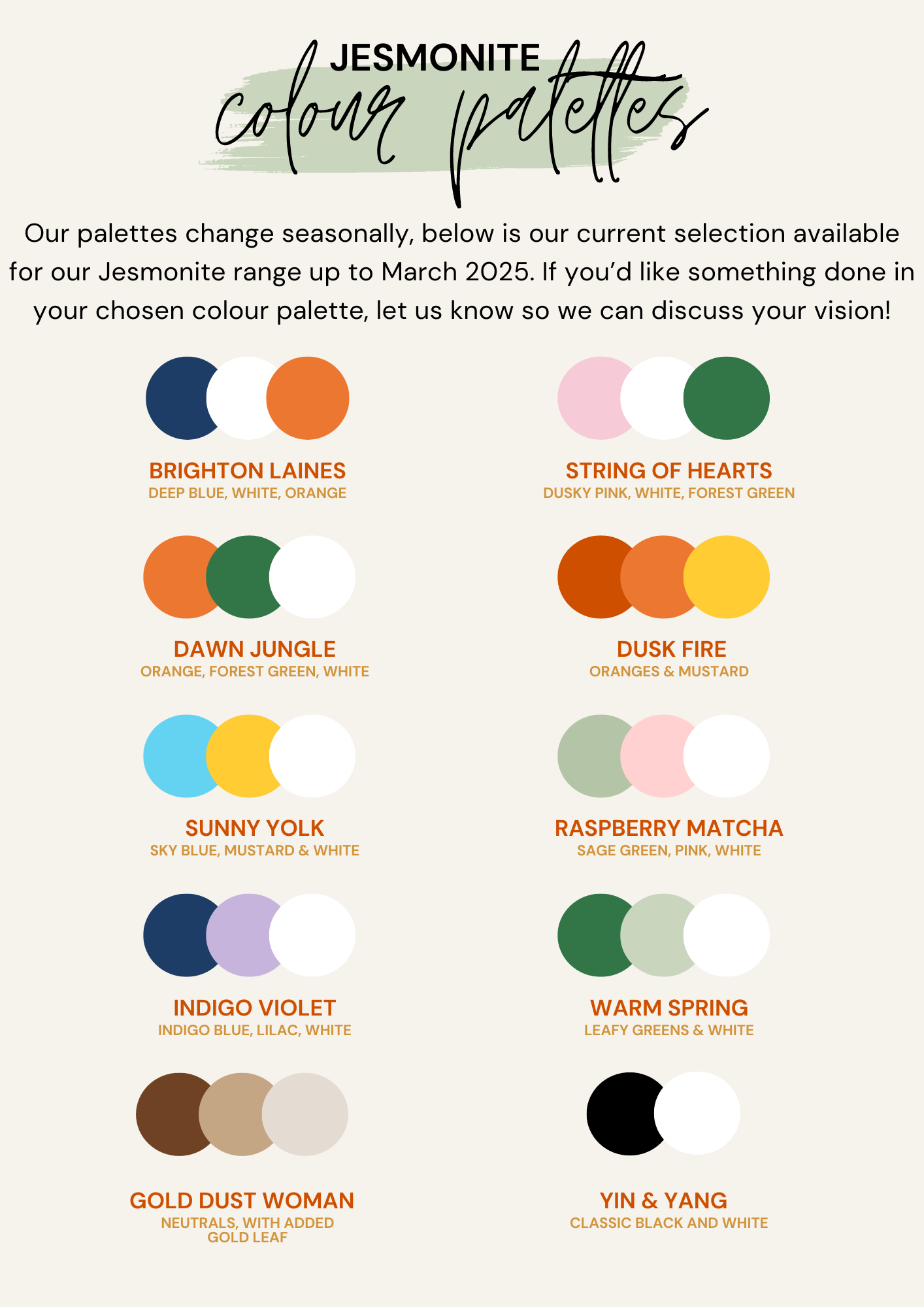 Each trinket tray is hand-poured & made to order so exact marble pattern may differ. Pictures are trinket trays in Brighton Laines & Raspberry Matcha.