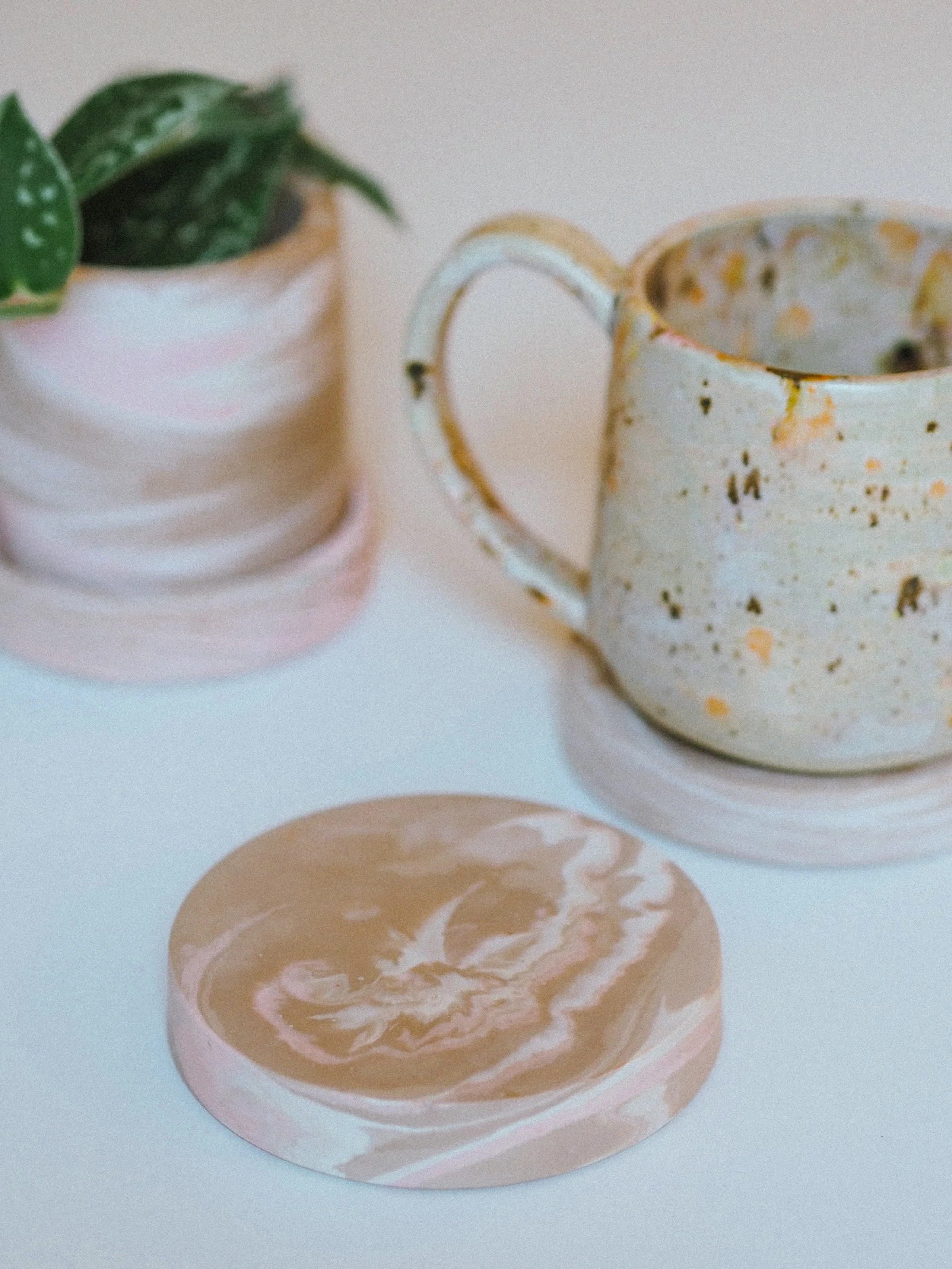 Our modern take on a classic neutrals palette; timeless warm champagne tones marbled with dusky pink hues to create a luxurious aperitif inspired collection.